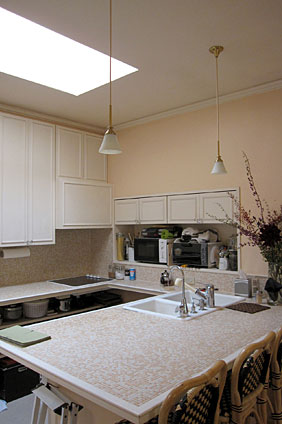リフォームで生まれ変わったU邸には沢山の知恵と技が詰まっています。間仕切りを取り払い、ぎりぎりまで天井を上げてゆとりある広さを確保したLDK。ホテルのように素敵なバス・パウダールーム。そして押入れや出窓を利用した収納スペース。一見すると新築のようにまとまっている間取りやデザインですが、実は以前の建物の名残が工夫という衣をまとって隠れています。
