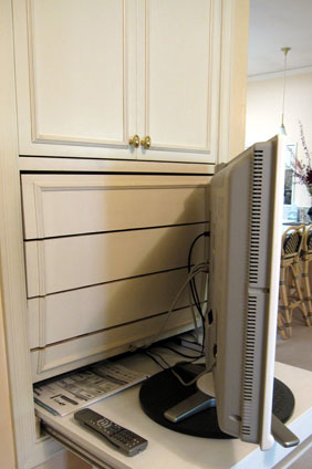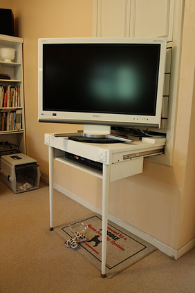 液晶TVに買い替えたのを機に台に脚をつけ、扉に切り込みを入れ蛇腹式に改造