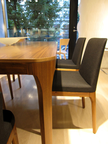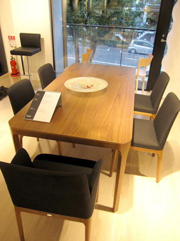 この秋には、スタッフも心待ちにしていたというトーネット社の美しい新作が登場。ウォールナットの美しい木目と微妙な角度のカッティングが美しい洗練されたダイニングテーブルとチェアのセット。コア社のダイニングはベンチシートとの組み合せが新鮮です。もちろん、アイデックのオリジナルシリーズをはじめ、様々なデザインの椅子の展示も充実。