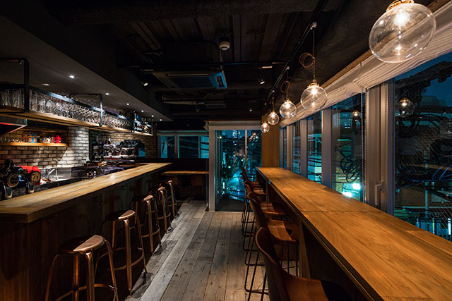 3Fは、オーストラリアの街のバーの雰囲気を漂わせる、ラスティックな空間。古材を利用した大型のバーカウンターを製作しました。合わせて、什器はVersmissenを採用し、空間全体の統一感を図りました。