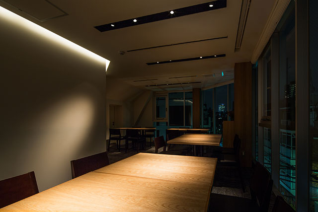 4Fは、パーティーに利用可能なプライベートな空間。天井や壁面には過度な装飾は避け、必要最低限の設備で料理や雑談を楽しめる、居心地の良い空間に仕上げました。