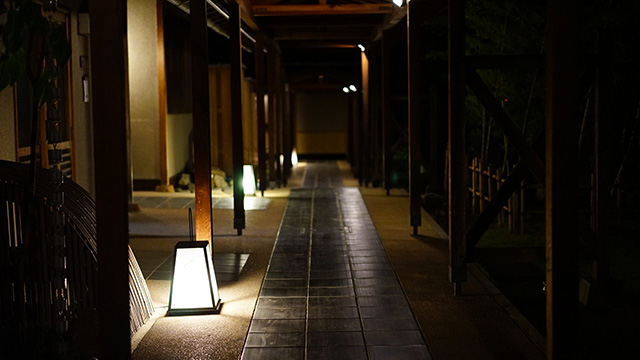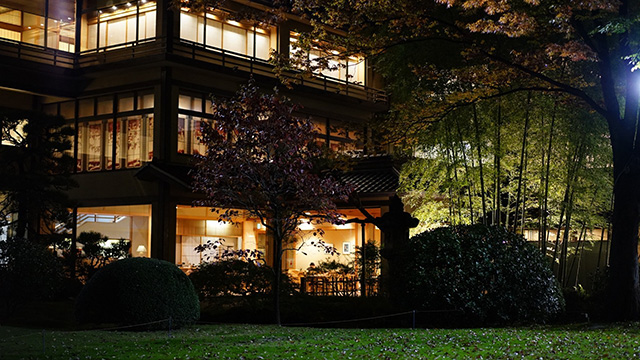 庭園を囲む日本古来の数寄屋作りの露天風呂付離れ8 室と計11 室の離れがあります。皇室御用達でもあります。